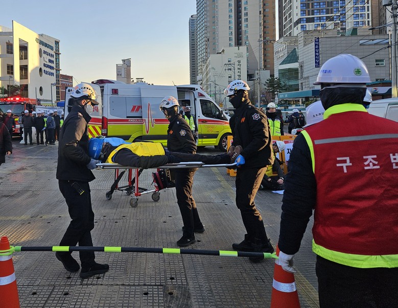 훈련에는 소방관·경찰관·현장 근로자 등 50여 명이 참여했고, 소방차·구급차·경찰차 등 관련 장비도 투입돼 실전처럼 진행됐다.