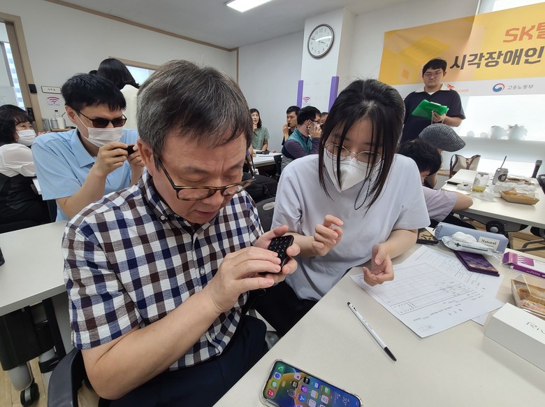 SKT는 시각장애인들이 실생활에서 느끼는 불편함이나 곤란한 상황들에 대해 정확하게 공감하고 지도할 수 있도록 시각장애인 대표 강사를 중심으로 교육을 진행했다. 대표 강사를 돕는 보조강사들은 각 교육생들의 옆에서 일대일로 장비 사용이나 앱 활용 방식을 설명하며 수업 몰입도와 학습 능률을 높였다.