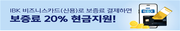 보증료 지원대상은 최근 6개월 이내 IBK 사업자 신용카드 결제 이력이 없는 고객으로 IBK BOX를 통해 초저금리 특별대출(간편보증) 기간연장을 신청하고, IBK비즈니스카드(신용)로 보증료를 결제하면 보증료의 최대 20%(최대 5만원)를 지원한다.
