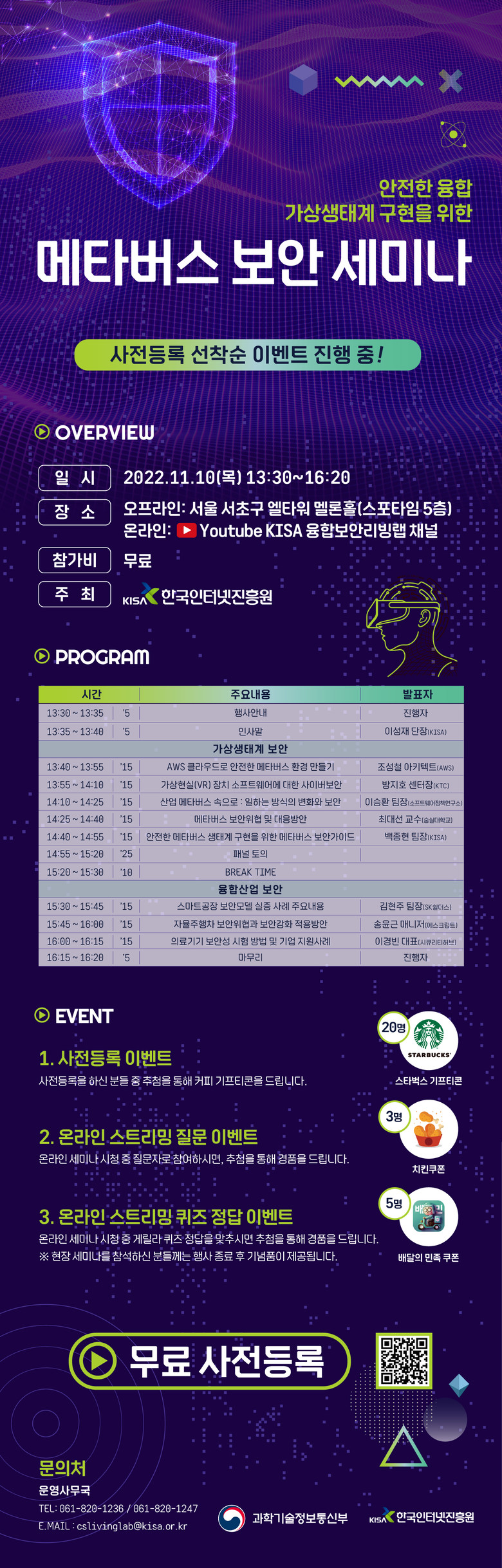 * (오프라인) 서울 서초구 엘타워 멜론홀, (온라인) ‘KISA 융합보안리빙랩‘ 유튜브 채널