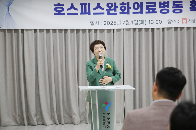 서울시의회 보건복지위원회를 대표해 축사를 전한 신동원 부위원장은 “서울시의 공공호스피스 병상은 여전히 수요에 비해 부족한 실정”이라고 지적하며 “이번 북부병원의 병상 확대는 단순한 시설 확장을 넘어, 환자 중심의 돌봄체계를 강화하고 시민의 의료 선택권을 넓히는 중요한 조치”라고 강조했다.