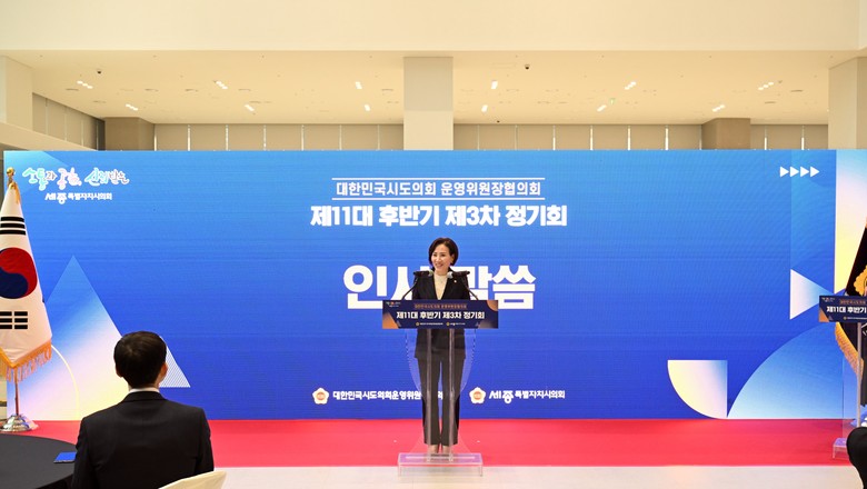 [서울 세계타임즈=이장성 기자] 서울특별시의회 이숙자 운영위원장(국민의힘·서초2)은 25일 세종공동캠퍼스 학술문화지원센터에서 개최된 ‘대한민국시도의회운영위원장협의회 제11대 후반기 제3차 정기회’에 참석해 지방의회 주요 현안과 국가균형발전 정책에 대한 심도 있는 논의를 이끌었다.