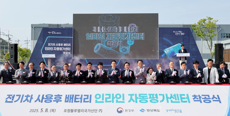- 급증하는 사용후 배터리를 미래 순환 자원으로 전환하는 핵심기반 시설 - [세계타임즈=경북 한윤석 기자] 경상북도가 8일 포항시 남구 동해면 블루밸리 국가산업단지에서 ‘전기차 사용후 배터리 인라인 자동평가센터’(이하 센터) 착공식을 개최했다.