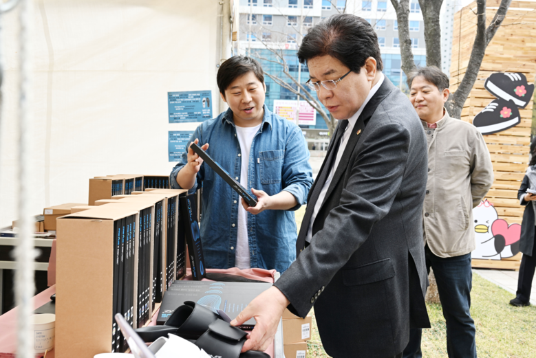 [부산 세계타임즈=이용우 기자] 부산광역시의회(의장 안성민)는 3월 28일 오전 11시 시청 2층 시민광장에서 시민과 함께하는 「부산 신발 판매⋅홍보전」을 방문하여 참여기업을 격려했다.