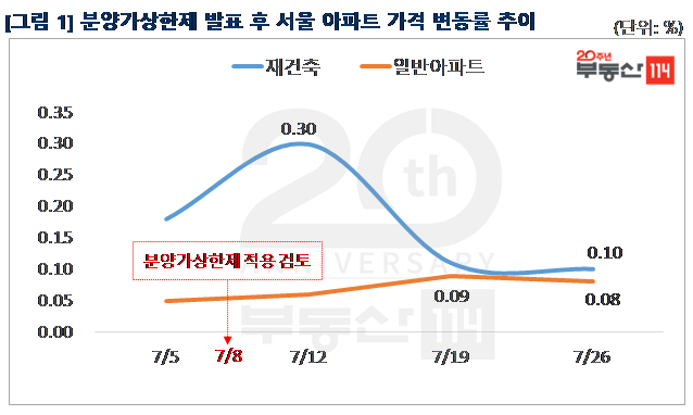 민간택지 분양가상한제 적용이 임박해졌지만 시장의 충격은 지난 주에 비해 완화된 모습이다. 서초구 잠원동 잠원동아, 강남구 청담건영 등 리모델링 추진이 논의되는 일부 단지를 중심으로는 기대감도 조성되는 분위기다. 입지나 단지 노후도, 분양가상한제 사정권에 드는지 여부에 따라 서울 아파트값이 혼조세를 보이고 있다. 정부가 강남권을 비롯한 서울 아파트 가격 동향을 예의 주시하고 있는데다 분양가상한제 외에 추가 규제가 나올 가능성도 있어 일단 집값 상승세 확대에는 제동이 걸릴 것으로 보인다.