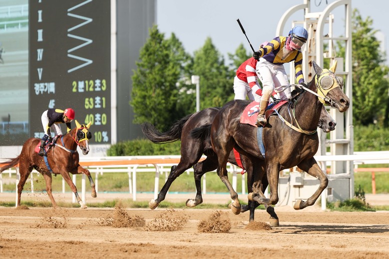 [세계타임즈 = 송민수 기자] 6월 9일(일) 한국마사회(회장 정기환) 렛츠런파크 서울 제8경주로 펼쳐진 제18회 경기도지사배(G3, 2000미터, 순위상금 5억원)에서 ‘세이렌’(한국 3세 암 흑갈색, 공이공팔 마주, 안해양 조교사, 장추열 기수)이 우승했다. ‘세이렌’은 생애 첫 우승을 이번 대상경주 우승으로 장식하며 2억 7천 5백만원의 상금을 가져갔다.