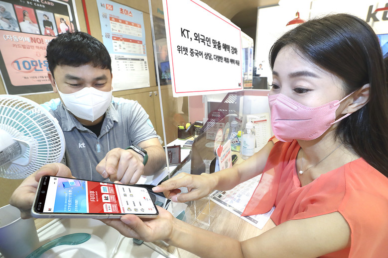 먼저 KT는 국내 거주 외국인 중 가장 많은 비중을 차지하고 있는 중국인 고객을 위해 위챗 내 KT 미니프로그램을 개설해 7월부터 본격적으로 운영한다. KT 미니프로그램은 위챗에서 ‘韩国 KT’를 검색해서 팔로우 버튼을 누르면 즉시 이용할 수 있다.