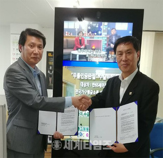 [세계타임즈 이영진 기자] WKC세계한류대회조직위원회(총재 최병호, 사진 오른쪽)外 한국문화예술연예인총연합,국제평화문화교류재단이 (주)월드방송(대표 이창열, 사진 왼쪽)은 최근 한류문화의 글로벌 협력구도를 위한 MOU를 체결했다고 31일 밝혔다.