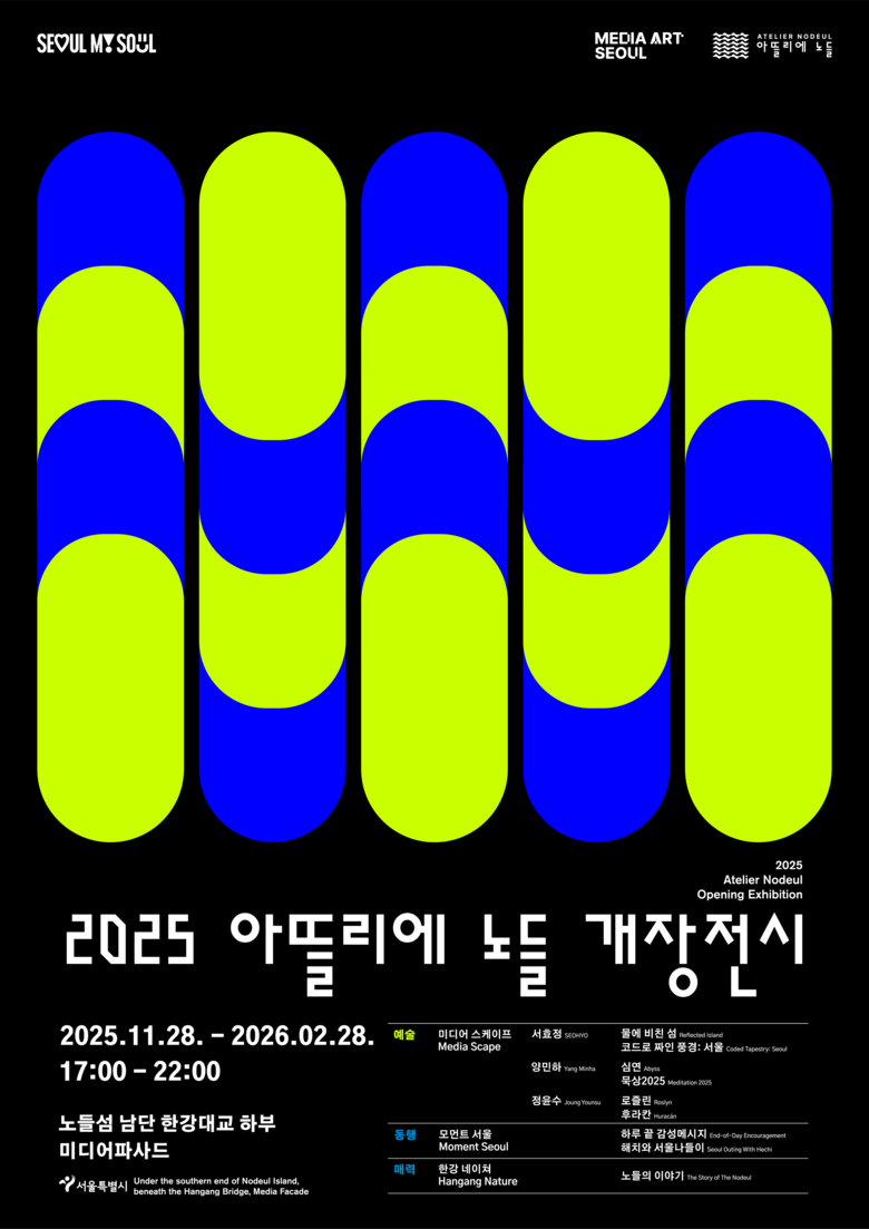 - 노들섬과 한강의 매력을 새롭게 보여주어 노들섬을 대표하는 문화공간으로 자리매김 [서울 세계타임즈=이장성 기자] 서울시는 한강 중심부 노들섬 남단 한강대교 하부에 공공 미디어아트 전시플랫폼 ‘아뜰리에 노들’을 11월 28일 개장하고, 2026년 2월 28일까지 매일 오후 5시부터 10시까지 운영한다고 밝혔다.