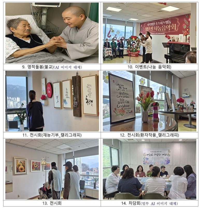 - 통증관리, 요양 간병 비롯해 생일파티, 작품전시, 가족 음악회 등 정서지원 프로그램도