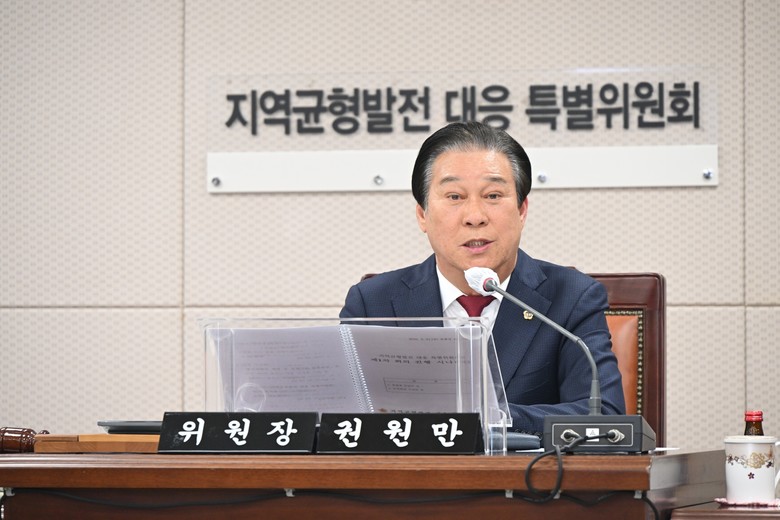 [경남 세계타임즈=최성룡 기자] 경남도의회는 3월 21일 ‘지역균형발전 대응 특별위원회(이하 특위)‘ 제1차 회의를 열어 위원장에 권원만 의원(국민의힘, 의령), 부위원장에 이경재 의원(국민의힘, 창녕1)을 선출했다.