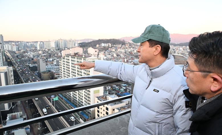 | ▲ 22일(월) 오전 성북구 북부간선도로 하월곡JCT 인근을 찾은 오세훈 서울시장이 강북횡단 지하고속도로 사업 현장을 내려다보고 있다. |