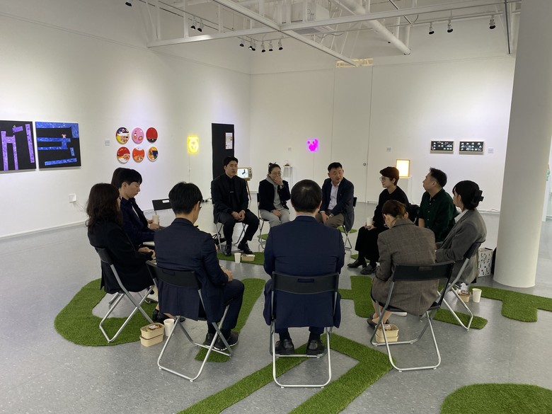 참석자들은 한글문화 상설 전시관에서 진행 중인 지역예술인 이채론 작가의 개인전을 직접 관람하고 작가로부터 작품들에 대한 설명을 들었다.
