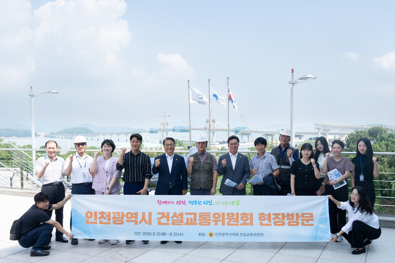 [인천 세계타임즈=심하린 기자] 인천광역시의회 건설교통위원회(위원장 김대중)는 최근 영종~신도 평화도로 건설사업, 인천국제공항 자기부상열차, 미단시티 카지노 공사중단 현장 등을 방문해 각 사업의 안전하고 조속한 진행을 당부했다고 13일 밝혔다.