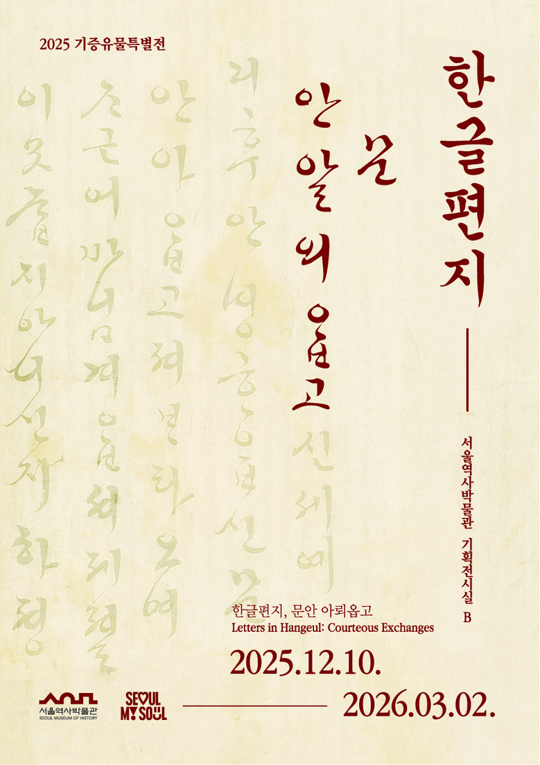 최병구 서울역사박물관 관장은 “옛사람들이 정성스럽게 쓴 글에는 사랑과 그리움, 배려의 마음이 고스란히 담겨 있다”며, “이번 전시를 통해 관람객 여러분께서도 서로의 안부를 전하고 따뜻한 인사를 나누는 정서를 온전히 느껴 보시길 바란다”라고 밝혔다.