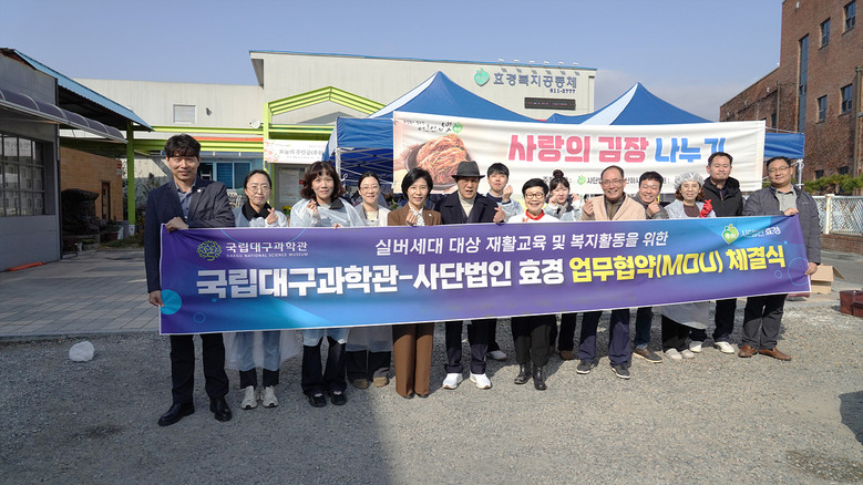 한편, 같은 날 국립대구과학관 임직원들은 사단법인 효경 및 지역 봉사자들과 함께 ‘사랑의 김장 나누기’ 행사에 참여해 정성껏 담근 김치를 지역 어르신들에게 전달하며 따뜻한 나눔을 실천했다.