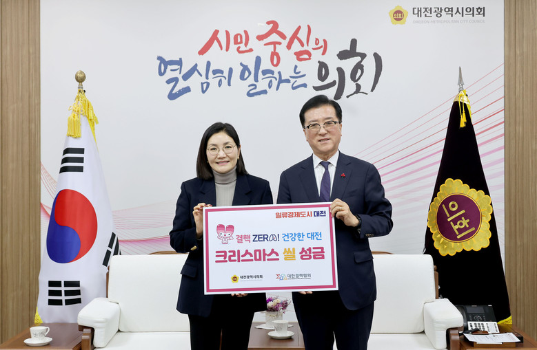 [대전 세계타임즈=이채봉 기자] 대전시의회 조원휘 의장은 17일 시의회 접견실에서 크리스마스 씰 증정식을 갖고 결핵 예방과 감염병 대응을 위한 지역사회 지원 의지를 밝혔다.