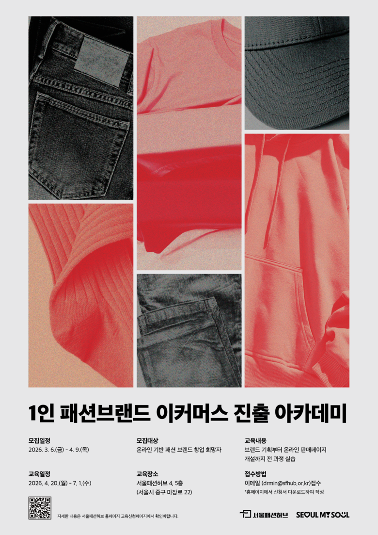 서울시는 ‘2026년 서울패션허브 K-패션 인적 인프라 강화 사업’을 추진하고, 3월 초부터 참여자 모집에 들어간다고 밝혔다. 올해는 ▴취·창업 아카데미 ▴AI·디지털 및 제조 실무 역량 강화 교육 ▴AI 가상의류 디자인 공모전 등 3개 트랙으로 운영된다. 연간 410여 명 규모로 순차 모집·운영할 계획이다.