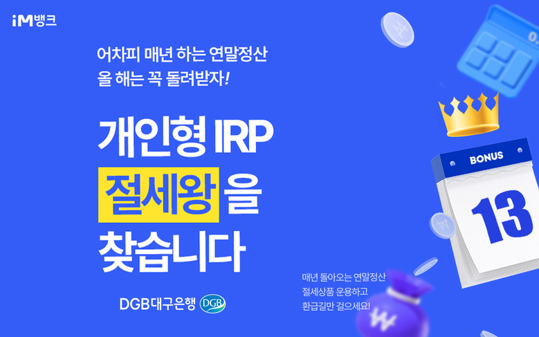 이벤트 기간 동안 비대면채널을 통해 개인형 IRP에 가입한 고객을 대상으로 한 선착순 이벤트도 동시 실시된다. 신규가입 고객 500명 선착순으로 메가커피 기프티콘을 증정하며, 10만원 이상 펀드 신규 운용 고객에게는 GS25편의점 모바일 상품권을 선착순 증정할 예정으로 이벤트와 관련한 자세한 사항은 DGB대구은행 iM뱅크를 통해 확인할 수 있다.