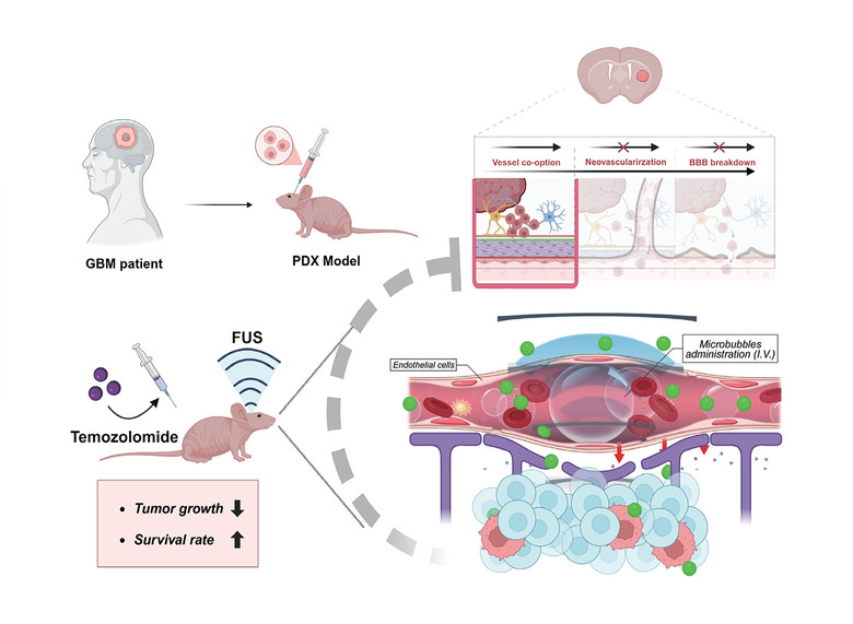 이번 연구는 종양의 혈관이 본격적으로 형성되기 전, 초기 단계에 집중 초음파를 적용한 것이 특징이다. 종양의 혈관화 이전에 초음파를 이용해 뇌혈관장벽을 개방할 때 항암제의 침투 효과가 훨씬 크기 때문이다.