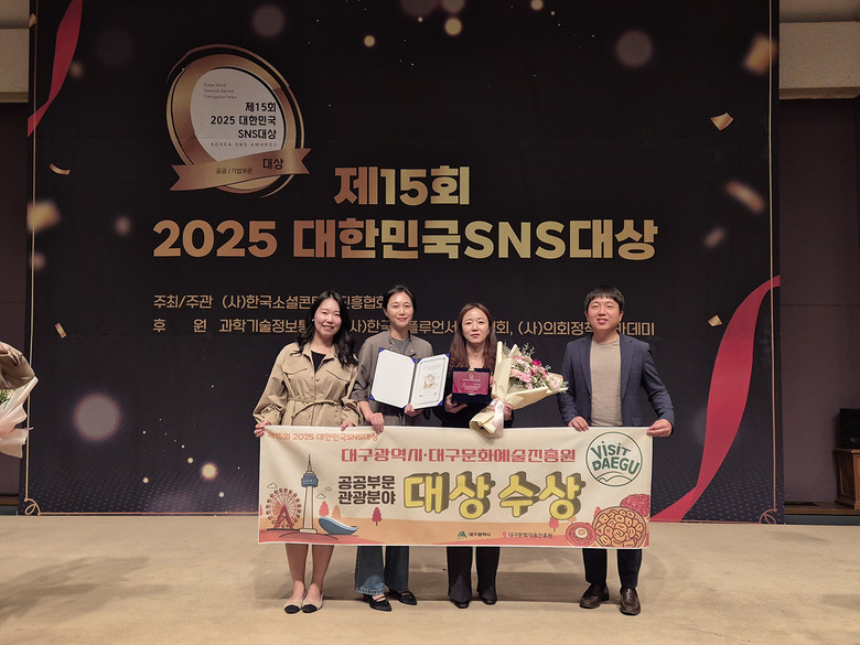 ▸ 최신 관광 트렌드 반영 콘텐츠와 차별화된 여행 정보 제공으로 높이 평가받아 [세계타임즈=대구 한윤석 기자] 대구광역시와 (재)대구문화예술진흥원(이하 문예진흥원)이 ‘2025 대한민국 SNS 대상’에서 관광부문 SNS 대상을 수상하였다.
