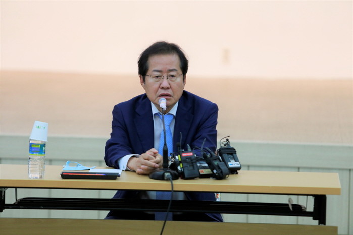 [세계타임즈 이진화 기자] 국민의힘 대선 경선 후보인 홍준표 의원이 3일 오후 경남 창원시 의창구 국민의힘 경남도당에서 열린 '홍준표 대선 예비 후보 당원 인사 및 기자간담회'에서 발언하고 있다.