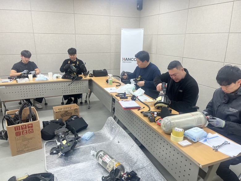 특히 이번 점검에는 소방장비관리센터 호흡정비팀과 ㈜한컴라이프케어 전문 A/S팀이 함께 참여해 장비 성능 검사, 부품 교체, 세척 작업 등 체계적인 절차로 총 110점의 호흡보호장비의 정비를 완료했다.