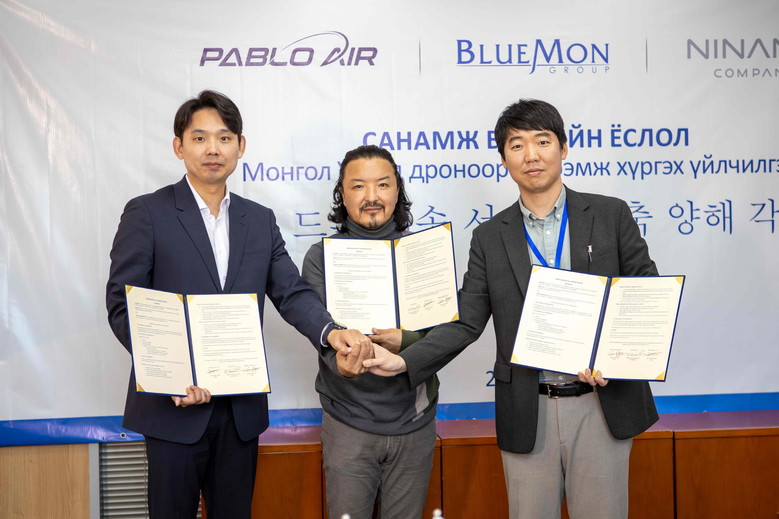 파블로항공은 3월 28일 몽골의 블루몬(BLUEMON) 그룹, 니나노컴퍼니와 함께 울란바토르 도심 드론배송을 위한 양해각서(MOU)를 체결했다고 밝혔다.