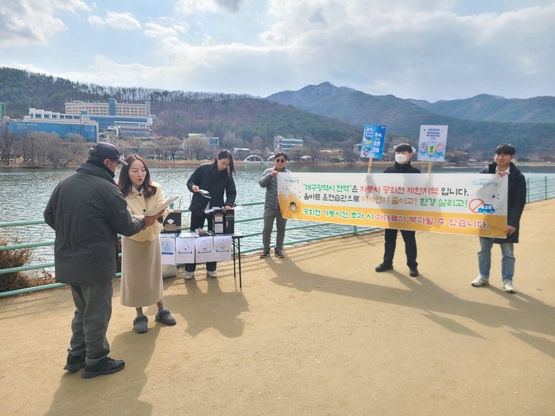 [수성구 세계타임즈=한윤석 기자] 대구시 수성구(구청장 김대권)는 미세먼지가 가장 심한 3월을 맞아 신학기 및 야외 활동이 증가하는 시기에 대비해, 봄철 초미세먼지 총력 대응을 위한 ‘나부터 먼저, 생활 속 미세먼지 줄이기 실천’ 홍보 캠페인을 지난 6일 수성못에서 실시했다.