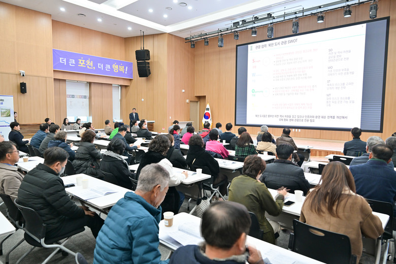 이날 설명회에는 백영현 시장을 비롯해 임종훈 포천시의회 의장, 유관기관 대표 및 읍면동 단체장 등 100여 명이 참석해 포천시 평화경제특구 구상안을 공유하고 의견을 나누었다.