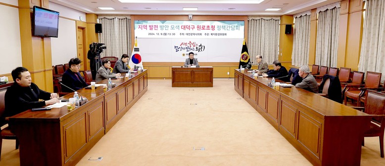 [대전 세계타임즈=이채봉 기자] 대전시의회는 9일 오후 1시 30분에 시의회 소통실에서 ‘지역 발전 방안 모색을 위한 대덕구 원로초청 정책간담회’를 개최했다.