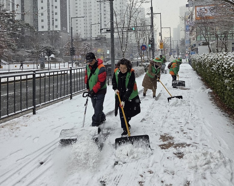 이면도로와 보도는 소형 스노우 브러쉬, 송풍기, 살포기 등을 동원해 신속하게 눈을 제거하고 어린이, 어르신 등 교통약자의 통행이 많은 곳은 제빙작업을 병행해 낙상 사고 예방에 각별한 주의를 기울였다.