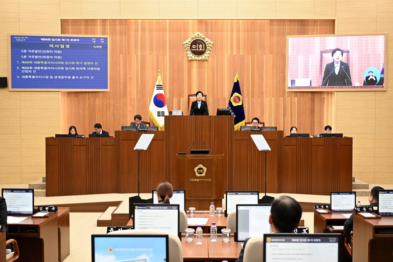 한편, 세종시의회는 오는 6일 제2차 본회의를 열고 5분 자유발언 및 시정 질문을 진행할 계획이다.