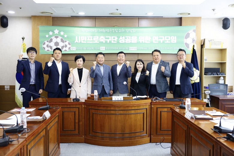 [천안시 세계타임즈=이현진 기자] 천안시의회 「시민프로축구단 성공을 위한 연구모임 (유영채(대표의원), 권오중, 이병하, 엄소영, 배성민, 김미화, 이종만)」은 지난 18일 행정안전위원회 회의실에서 2차 회의를 열었다.