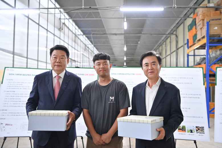 김태흠 지사는 16일 시군 방문 네 번째 일정으로 당진시를 찾아 석문면 삼화리 일원에 조성한 당진시 스마트팜 사관학교를 점검했다.