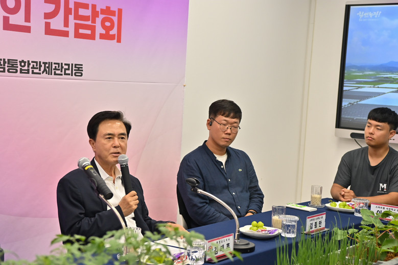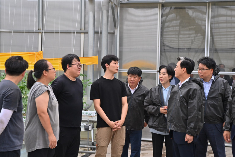 이날 현장 점검에서 김 지사는 당진 스마트팜 사관학교 현황을 듣고, 임대 스마트팜 시설과 재배 작목 등을 살핀 뒤, 청년농과 간담회를 가졌다.
