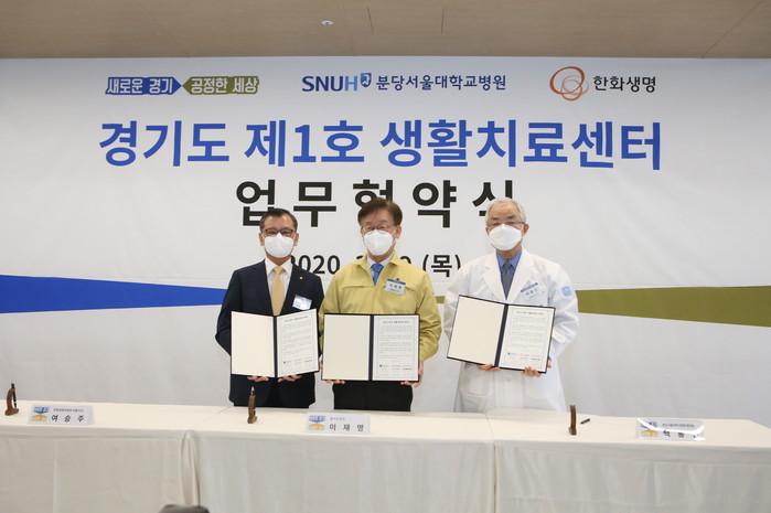 3월 19일(목) 한화생명은 경기도 및 분당서울대병원과 업무 협약식을 체결하고 3명의 코로나19 경증환자 입소와 함께 생활치료센터 운영을 시작했다.