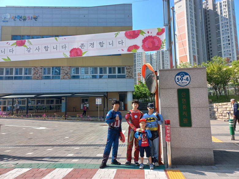 ‘어벤저스와 환상의 만남’은 아침 등원 길에 사회복무요원과 교직원이 어벤져스와 동화 속 캐릭터로 깜짝 등장하여, 유아들에게 호기심과 웃음을 선사하였으며, 등원하는 유아들의 발걸음이 가볍다.