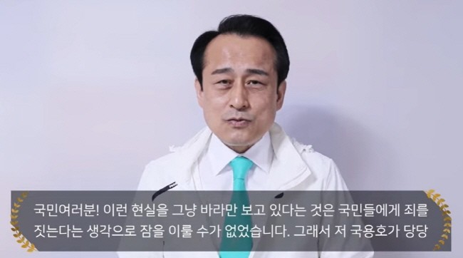 이날 국용호 사무총장은 “더불어 민주당에서 후보가 선출됐고, 국민의 힘에서는 후보가 선출되고, 정의당, 국민의 당에서 대통령 후보들이 나왔지만 정작 국민들은 뽑을 사람이 없다고 하소연하고 있다”며 “이런 대통령 선거는 처음 있는 일이다. 그래서 저 국용호가 당당하게 나섰다”고 호소했다.
