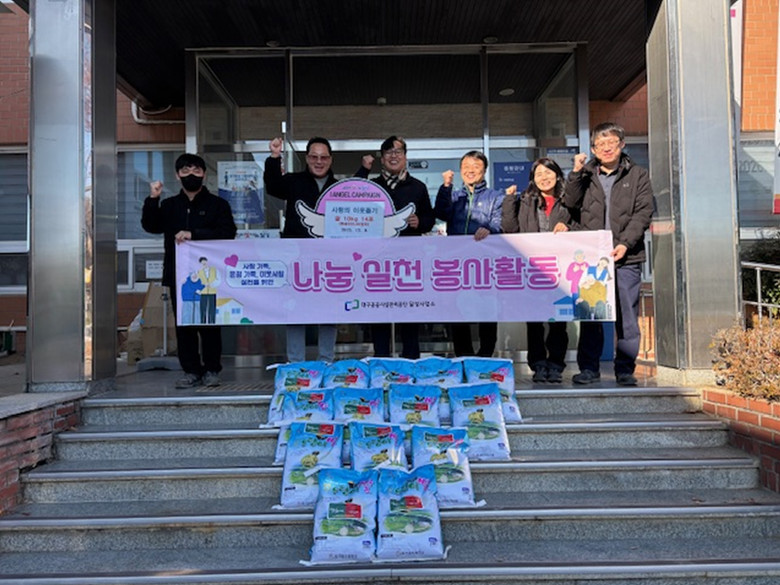 ▸ 김장·연탄·겨울나기 물품 나눔으로 지역사회에 따뜻한 온정 전해 [세계타임즈=대구 한윤석 기자] 대구공공시설관리공단은 연말을 맞아 미세먼지 취약계층과 돌봄 사각지대 이웃을 돕기 위해 겨울철 사회공헌 활동을 진행했다.