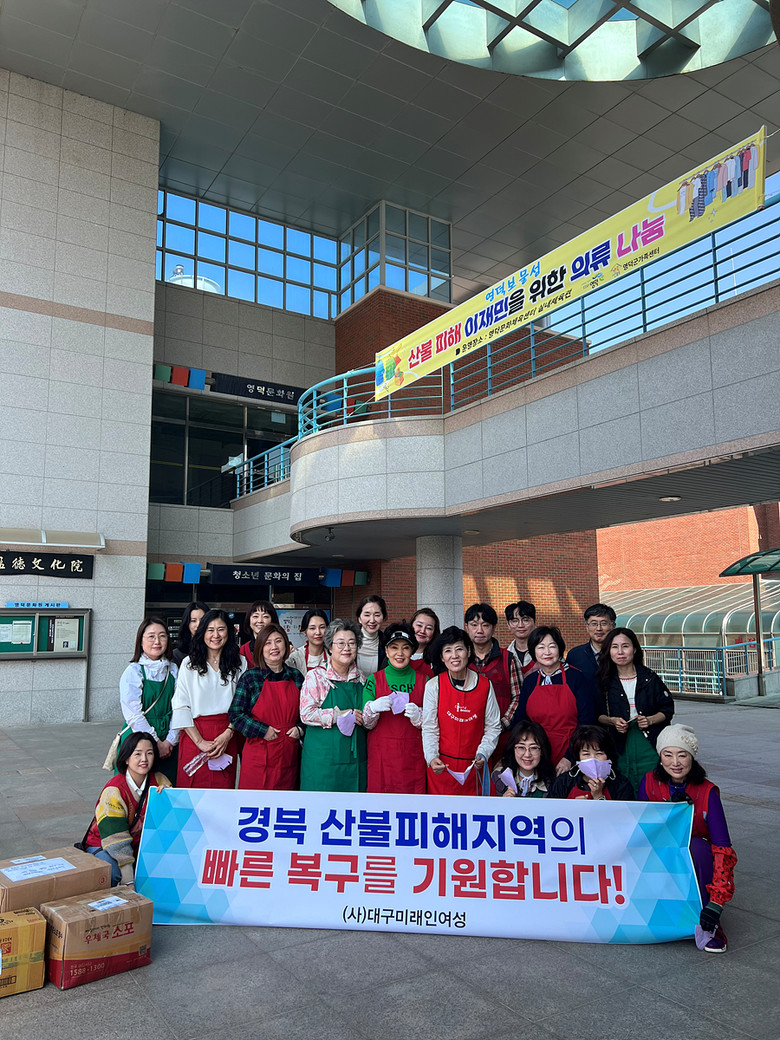 ○ 장 소 : 영덕문화체육센터(영덕군 영덕읍 강변길 324) [세계타임즈=대구 한윤석 기자] 지역사회 발전을 위해 공헌하고 있는 (사)대구미래인여성(대표 김경이) 회원들은 4월 8일(화) 산불피해 현장인 영덕군 영덕읍에 위치한 영덕문화체육센터에서 자원봉사활동을 펼쳤다.