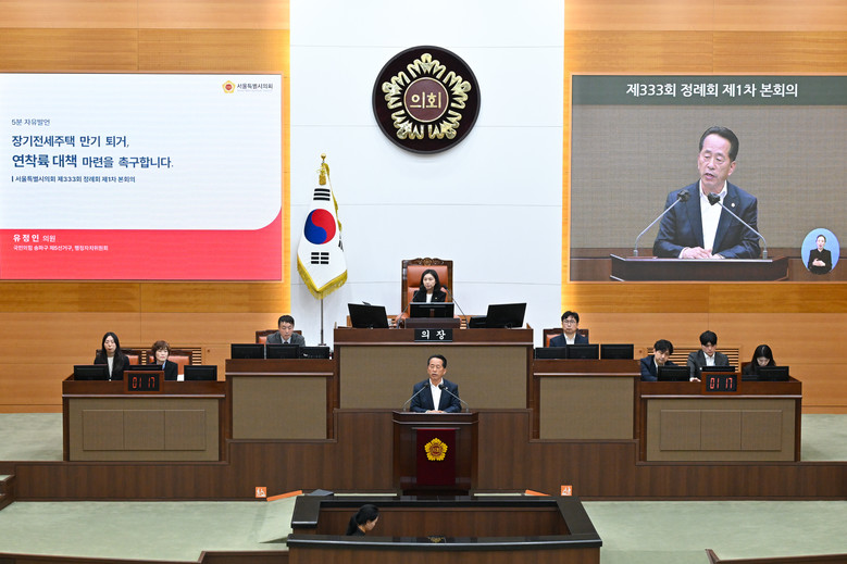 [서울 세계타임즈=이장성 기자] 서울특별시의회 유정인 의원(국민의힘, 송파구 제5선거구)은 11월 3일 제333회 정례회 본회의 5분 자유발언을 통해, 서울시가 지난 20년간 운영해 온 장기전세주택(Shift)의 만기 퇴거 문제를 지적하며 “정책의 신뢰를 지키기 위한 연착륙 대책이 시급하다”고 촉구했다.