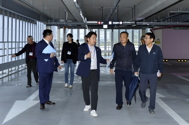 점검 과정에서 ▲ 주차장 내부로 빗물 유입 우려, ▲ 옥상층 곳곳에 빗물 고임 발생, ▲ 실외기 설치 위치(차량 출입구 옆) 부적정, ▲ 내부 기둥 표면 마감 보강 필요, ▲ CCTV 사각지대 여부 재점검 필요 등을 지적했으며, 환승주차장 운영 일정에 차질이 없도록 신속하게 조치해달라고 집행부와 현장 관계자에게 주문했다.