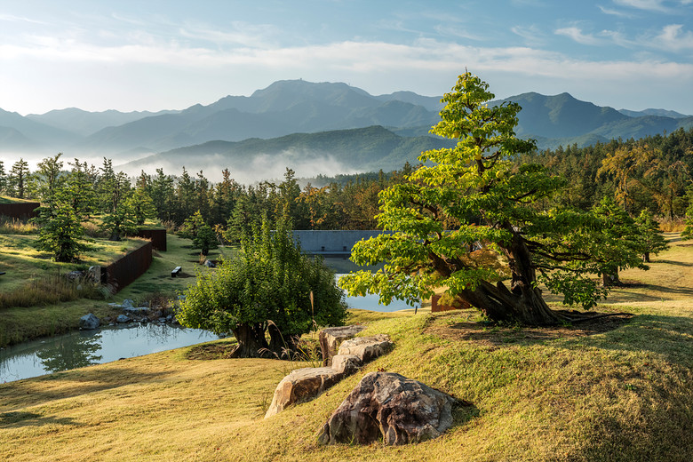 군위군 팔공산 자락에 위치한 사유원은 52만㎡ 부지에 모과나무를 비롯한 다양한 수목들과 세계적인 건축가와 조경가, 예술가의 작품이 조화롭게 어우러진 산림 속 정원이자 사색의 공간이다.