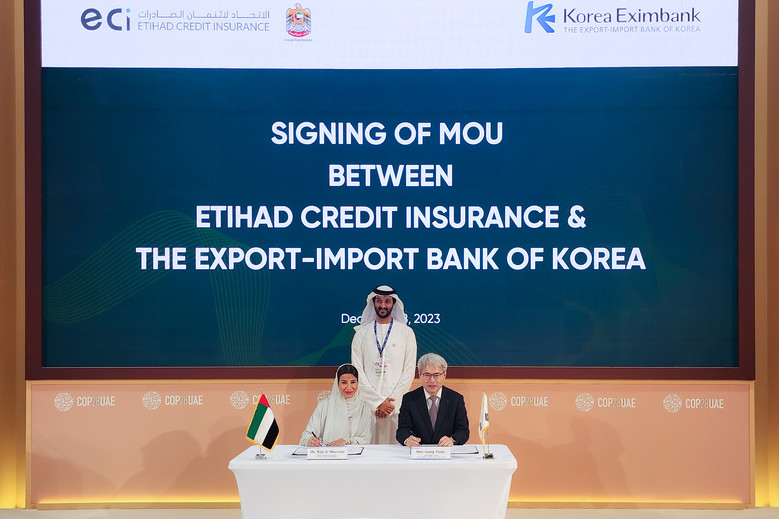 ECI : 2018년 UAE 정부가 100% 출자하여 설립한 공적수출신용기관으로 UAE 기업의 상품, 서비스 수출 및 해외투자를 지원함.윤희성 수은 행장은 지난 8일(현지 시간) 제28차 유엔기후변화협약 당사국총회(COP28)가 개최되고 있는 두바이에서 라자 알 마즈루에이(Raja Al Mazrouei) ECI CEO와 만나 이 같은 업무협약서에 서명했다.