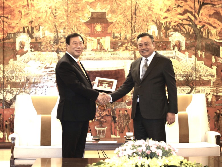| ▲ 왼쪽부터 최민호 시장, 쩐 시 타잉 하노이 시장 |