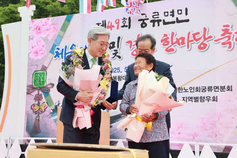 지난달 5일 궁류면 체육대회 및 경로한마당 축제에서 궁류 면민들을 감사의 뜻을 모아 오태완 군수에게 감사패를 전달해 뭉클함을 안겼다. 궁류면은 우순경 총기 사건이 일어난 마을로 1982년 4월 26일 면민 56명이 같은 날 숨진 비극을 겪었다.