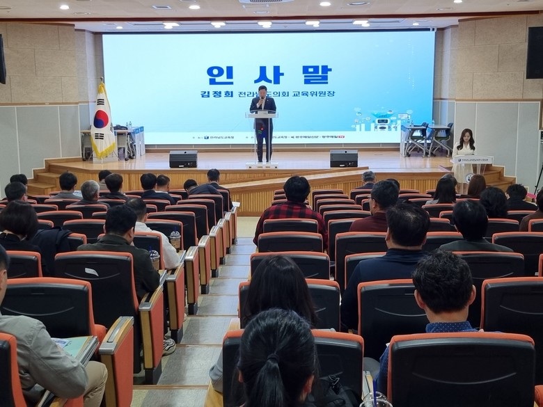 김 위원장은 인사말에서 “AI와 디지털 혁신이 교육의 패러다임을 빠르게 바꾸고 있는 지금, 전남의 미래 교육을 새롭게 설계해야 할 중요한 시점”이라며, “이번 포럼이 전남 미래 교육의 방향성을 구체화하고, 현장 중심의 변화를 이끌어내는 공론의 장이 되기를 기대한다”라고 밝혔다.