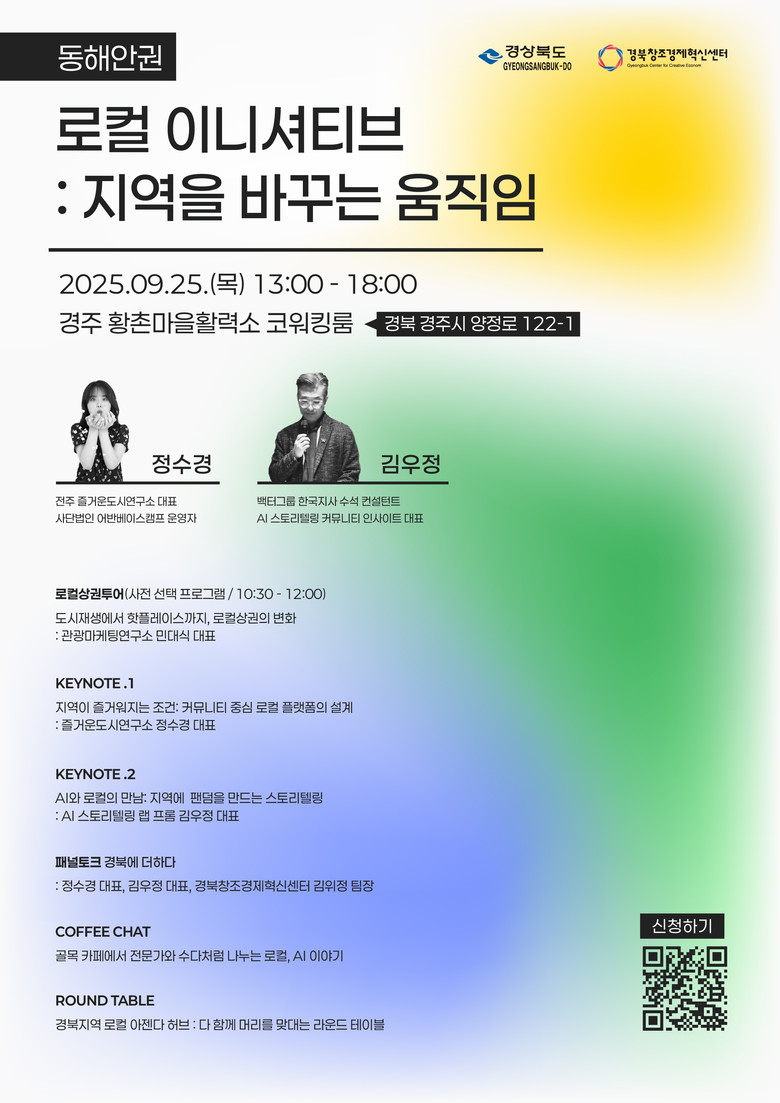 기조 강연으로는 정수경 ‘전주 즐거운 도시연구소’ 대표가 ‘지역이 즐거워지는 조건’을, 김우정 ‘생각식당’ 대표가 ‘AI와 로컬의 만남’을 주제로 지역의 가치를 높이는 스토리 텔링 등에 대해 강연했다.