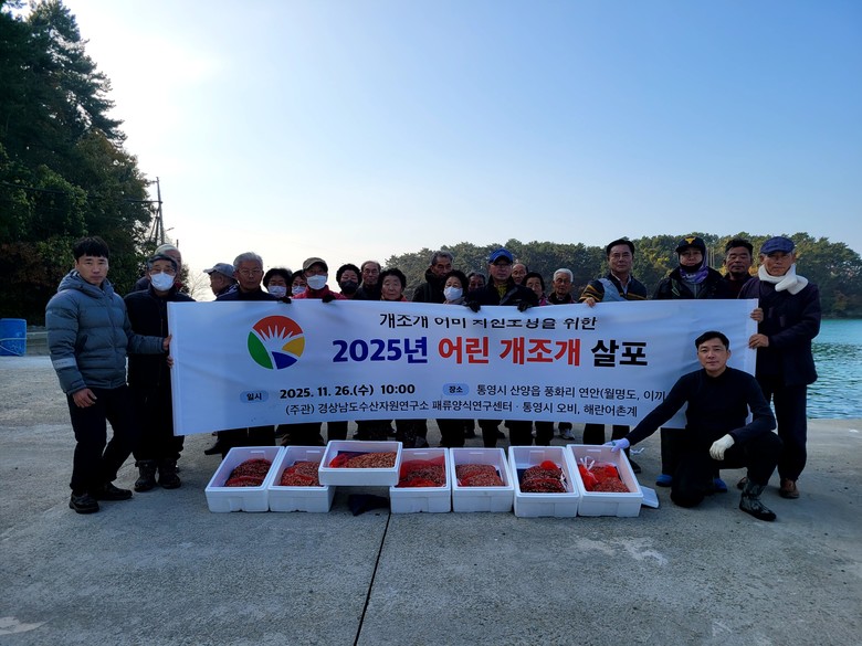 이번에 시험 방류한 어린 개조개는 2024년 10월과 2025년 5월에 확보한 어미를 이용하여 센터에서 생산한 것이다. 살포한 어린 개조개는 경남도 방류지침에 명시된 개조개 방류 크기(0.6㎝ 이상)보다 큰 1.0㎝ 이상으로 수산안전기술원에서 전염병 검사를 완료한 건강한 개체들이다.